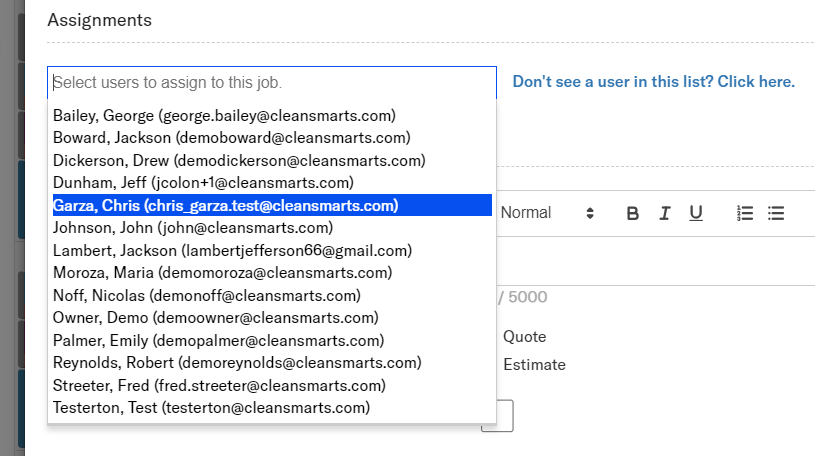 Add users that should be assigned to the job. The users that appear in this list are any users that have access to the job location.