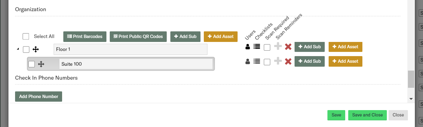 1. You can add additional sub-locations using the "+ Add Sub" button, or you can click the "+ Add Sub" button next to an existing sub-location to add a sub-location below it.